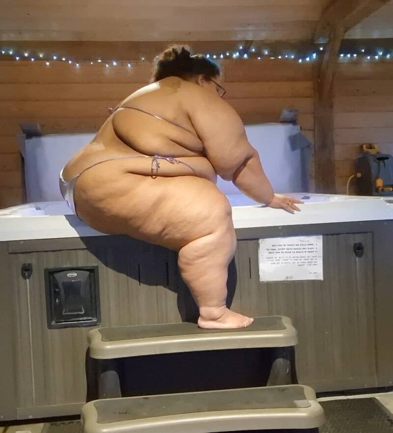 But while I show you my jiggly blubber encased in tight fishnets, I tell you all about what it takes physically to be a nearly 500 lb goddess.