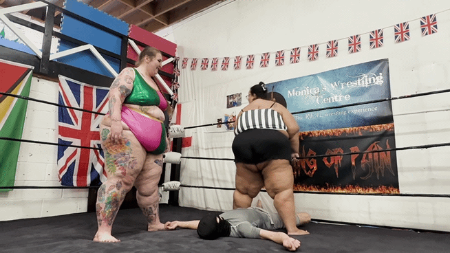 Nothing like being covered and flattened by two beautiful gigantic babes. Rach and Dee use this simp as a toy, thinking of games to use their massive bodies to torment him.